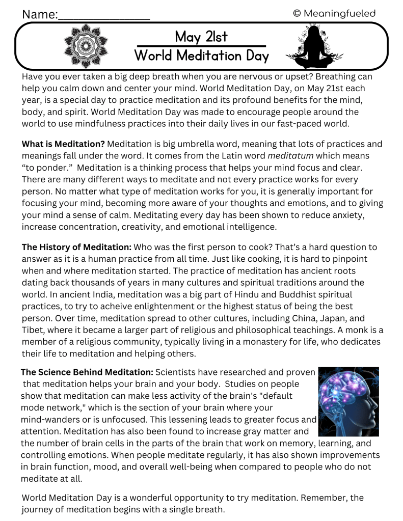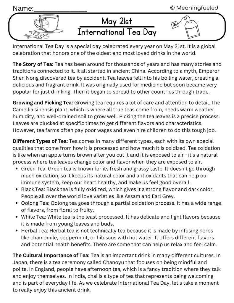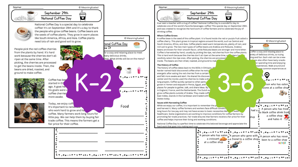 Meaningfueled Morning Worksheets allow students to explore a different topic every day linked to the National Days. Each day we have two different options available so you can choose the topic that you think your class will enjoy. Each worksheet includes a thoughtfully crafted reading that highlights diverse perspectives, explores unique histories, and sparks curiosity.