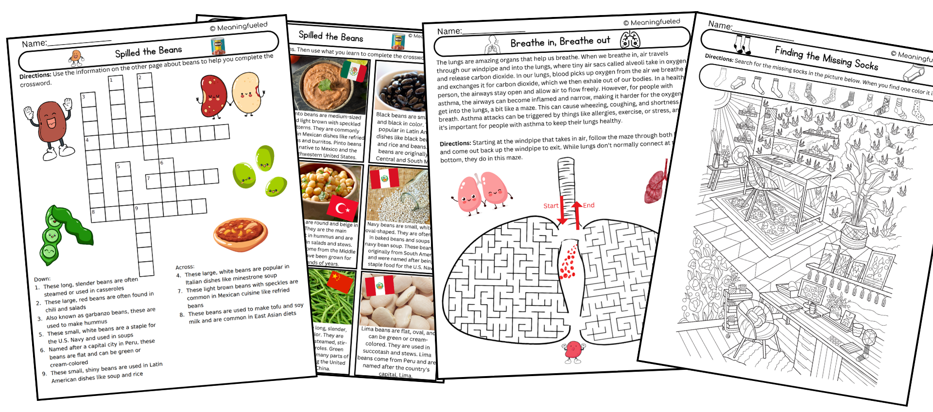 Classic word searches, crossword puzzles, mazes, coloring sheets, and hidden pictures take on new meaning with Meaningfueled sheets. Each one has them learning something new while they complete them.
